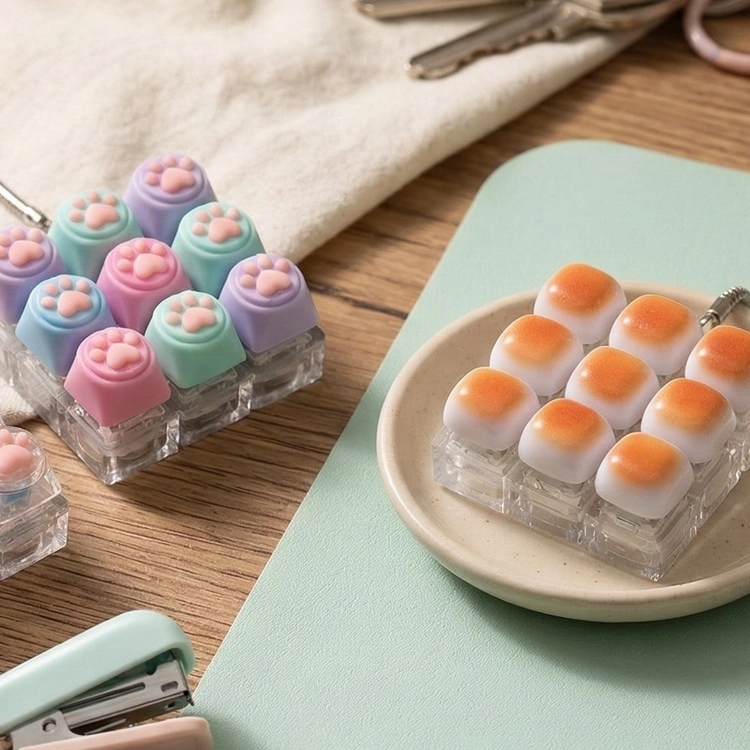 GUTS Cat Bread Keychain 9-hole LED Transparent Clicker Keyboard Keycap Blue Switch Goods Toy Clicker