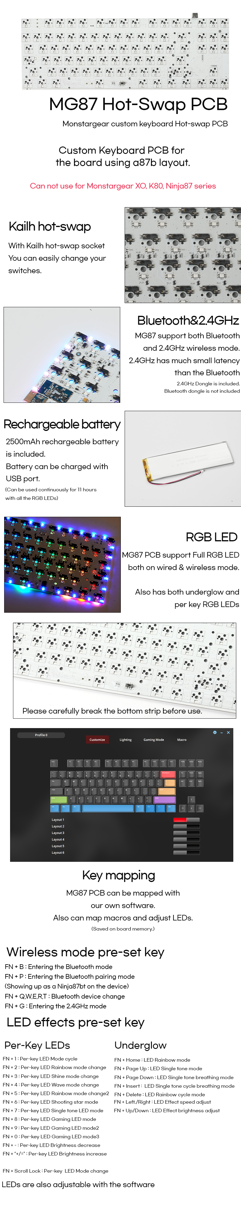 Can not use for Monstargear XO, K80, Ninja87 series