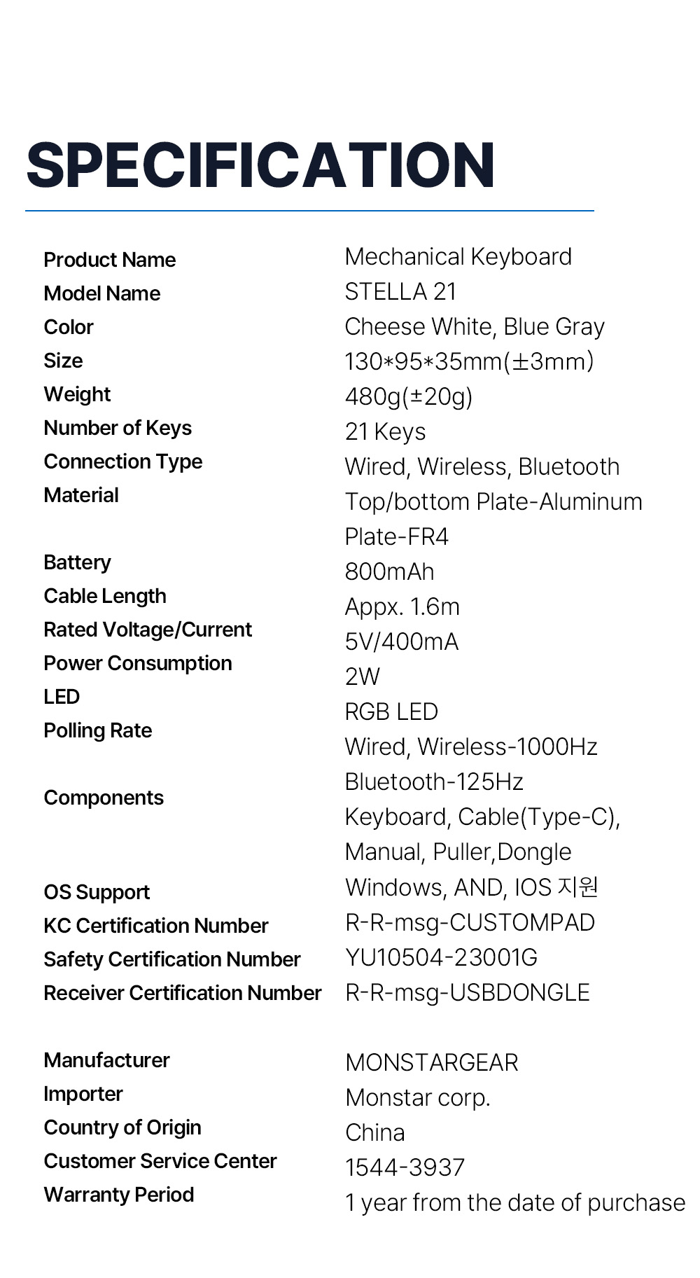 Shipping and order: gears@monstar.co.kr