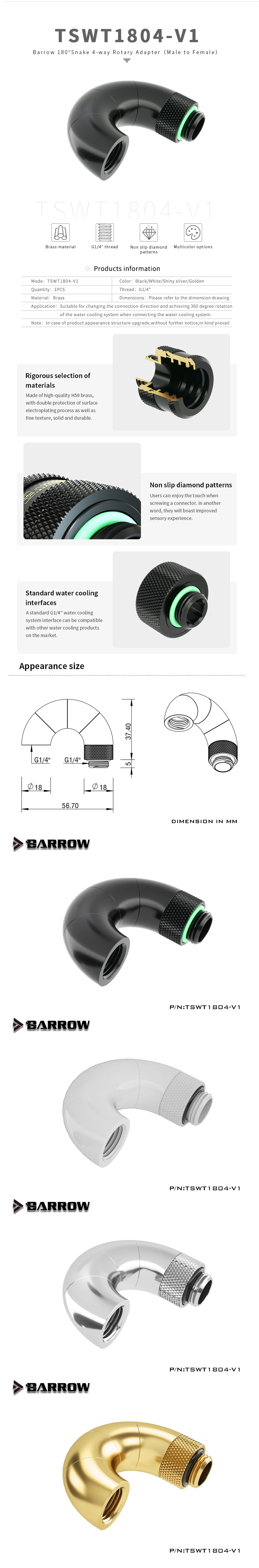 Barrow 180°Snake 4-way Rotary Adapter (Male to Female ) Black TSWT1804-V1