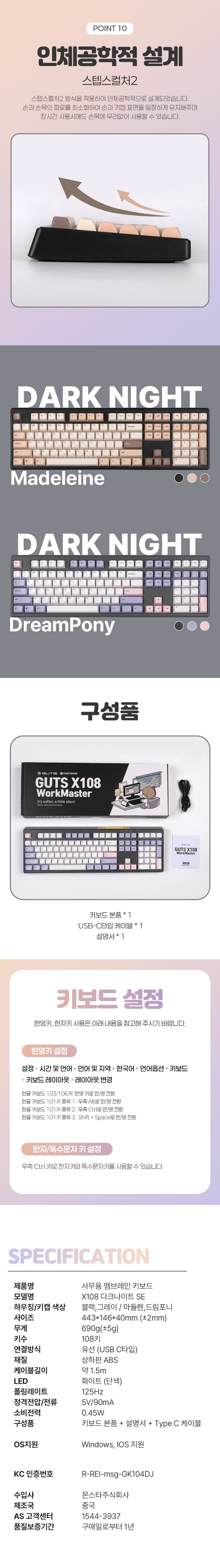 Guts X108 Dark night SE Bubble Bobble 6th Generation Membrane Low-Noise Office Full-Array Lubricated Keyboard
