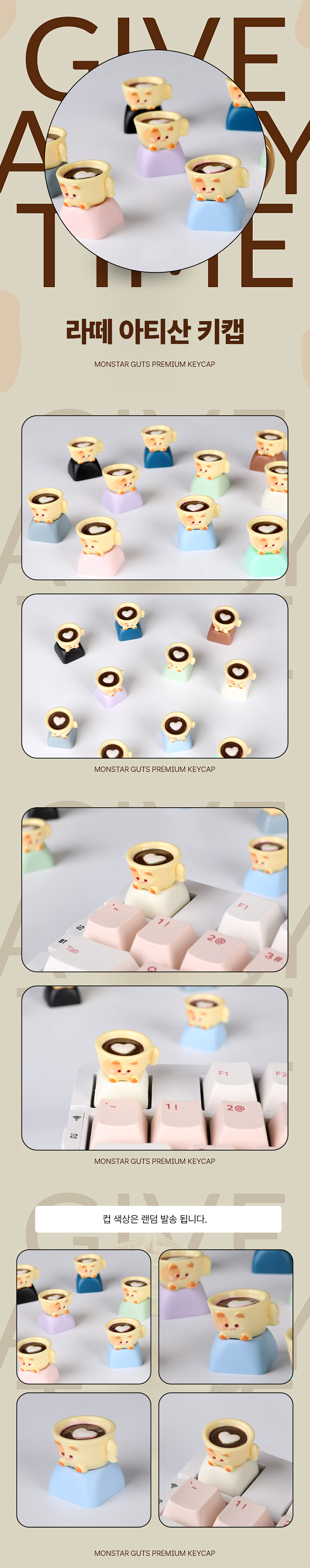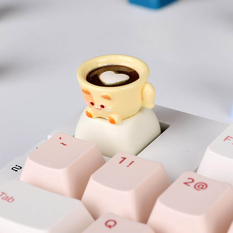 Monstar GUTS Latte 3D Artisan ABS Resin Custom Mechanical Keyboard with Cat Coffee 1U Point KeycapsMD